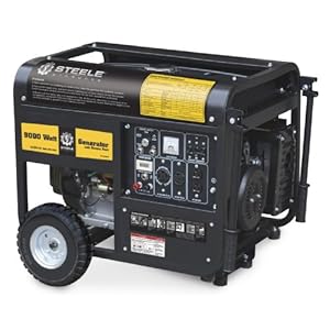 Labels: 000 Watt 4-Cycle Gas Powered Portable Generator With Wheel Kit Electric Start, Steele Products SP-GG900E 9